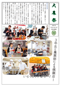 大農祭2日目、一般公開日は保護者をはじめ地域の方々など多くの方にご来校いただきました!来校者数は延べ1,800名!!!全校生徒一人ひとりが個性と力を発揮し大いに盛り上がった学校祭でした!来年も頑張りますのでどうぞよろしくお願いします♪