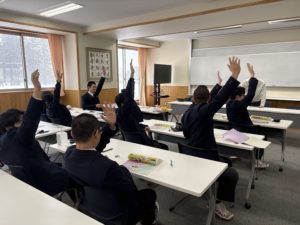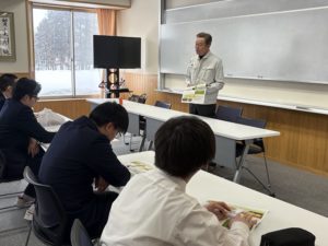 2月19日(木)農業科学科野菜専攻班課題研究の時間に、落花生農家の佐藤毅さんから、栽培方法や新しいことに挑戦する姿勢を教えていただきました。