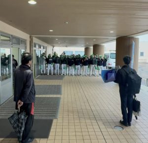 3/31(火)に、ご退職される二人の先生方を野球部のエールで盛大にお送りしました!